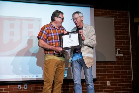 Wesley Houp accepts the 2024 James Baker Hall Book Award
